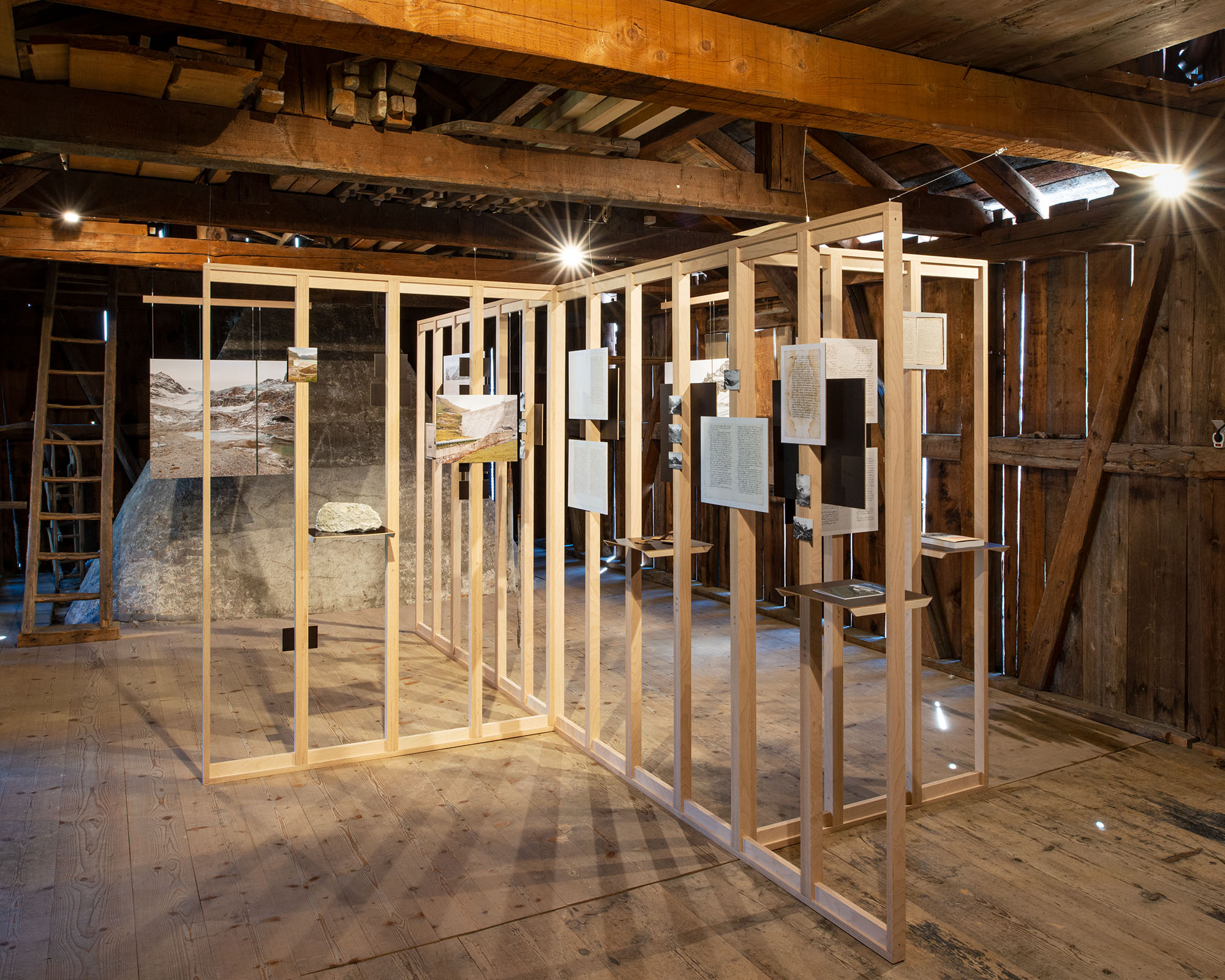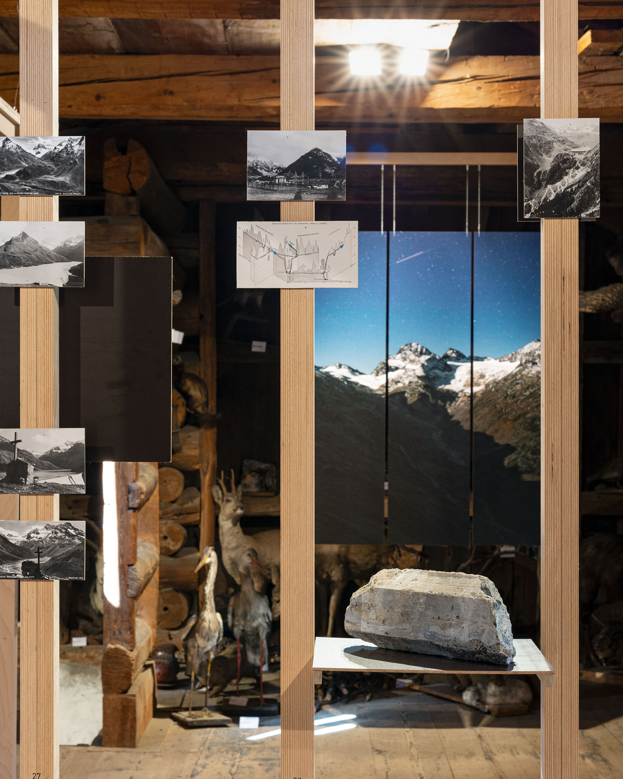 The project developed from an invitation by Roland Haas to contribute to the group show „Vom Schmelzen und Schwinden“ [on melting and waining] at Kunstforum Montafon. In collaboration with Montafoner Museen, a mixed-media installation has been presented at Heimatmuseum Schruns from June 2022 to March 2023 as a satellite venue for the group show.