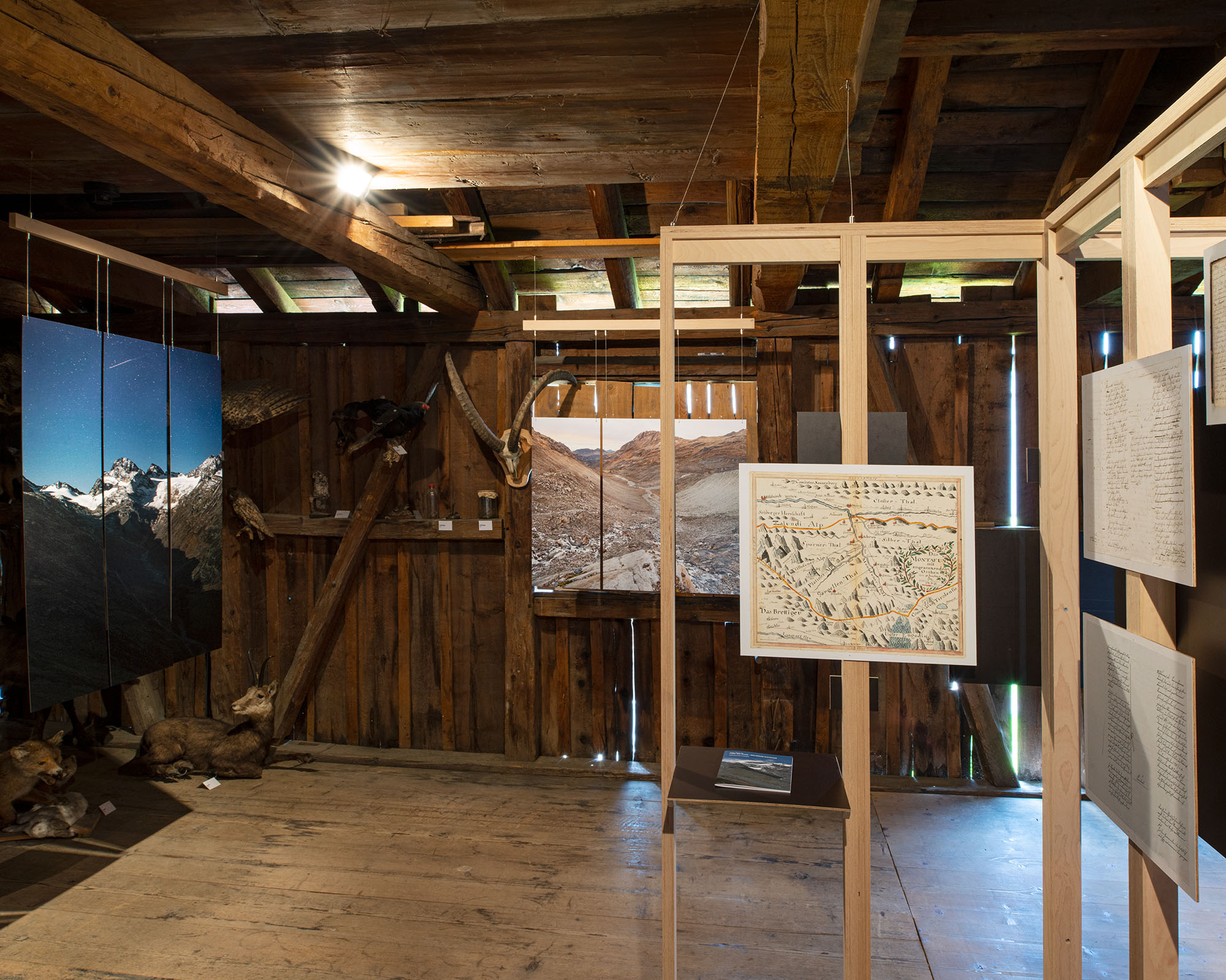 Many historical elements of the installation derive from his research and, very often, his private collection. Silvretta Historica (2013) by Dr Michael Kasper (Montafoner Museen) has been another important source of information for this project.