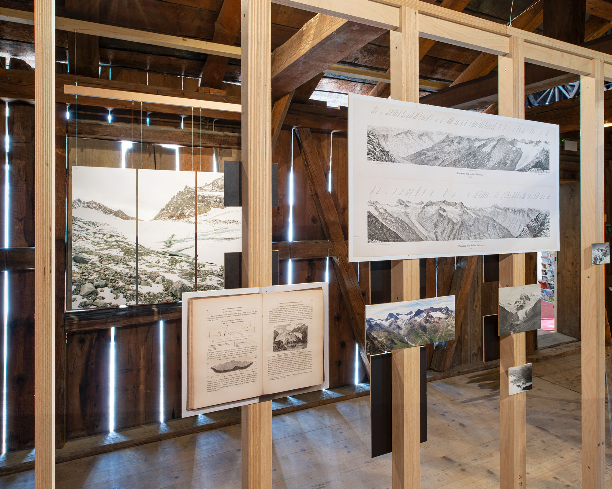 These images complement the selection of historical texts, visuals, and objects that illustrate the glaciers‘ long history of transit zones in between cultural landscapes and life-threatening wilderness.