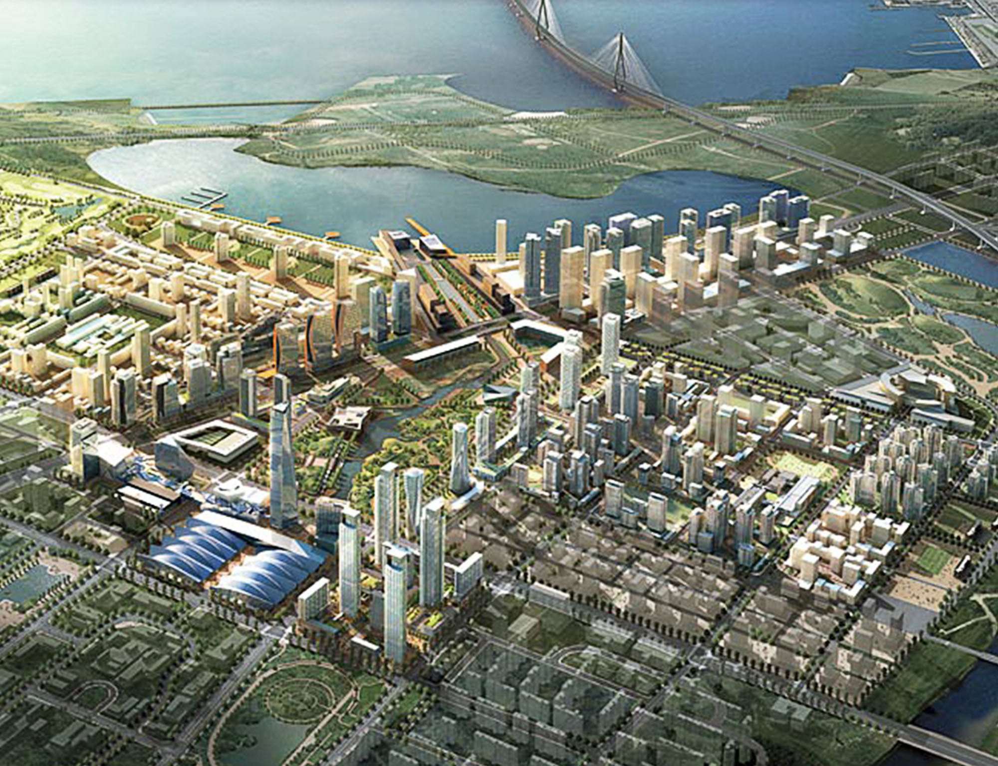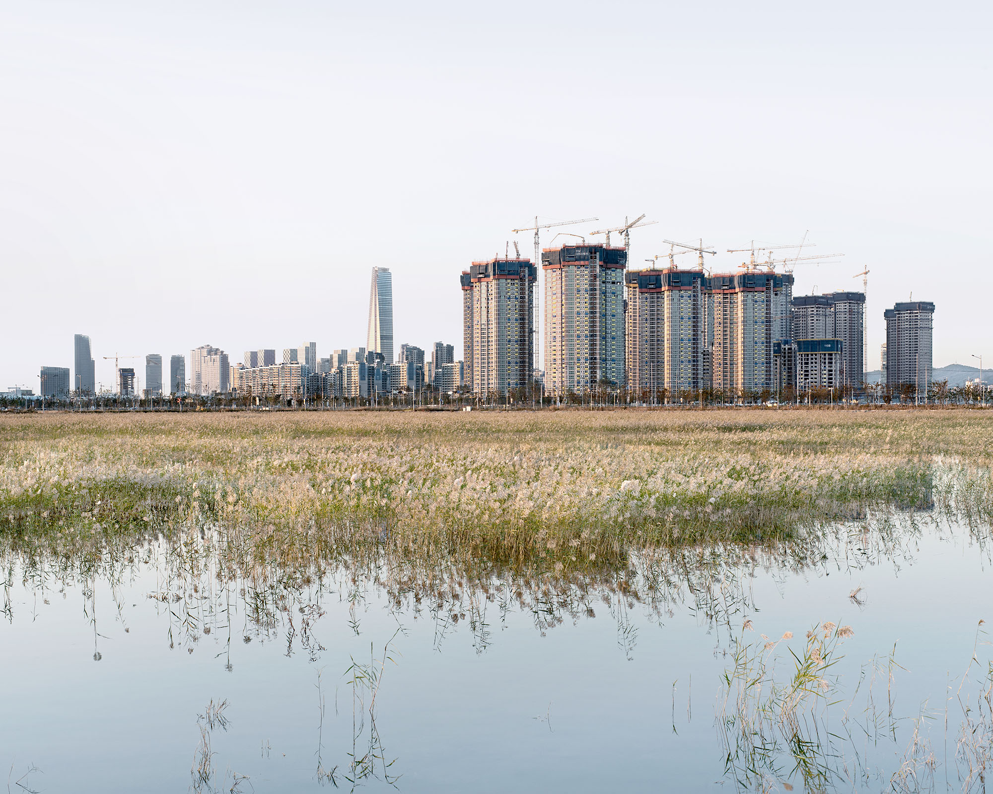 In 2012, the construction works were delayed and those parts that were already completed resembled a ghost town. The global financial crisis had left clear marks on a site promoted as the future business hub for Northeast Asia. One of the few assets already in operation was the Jack Nicklaus Golf Club course suitable for international tournaments. New Songdo was well prepared for the return of the anticipated growth: numerous plots for further constructions were available, idly awaiting their future purposes in a rectangular grid of unfinished streets.