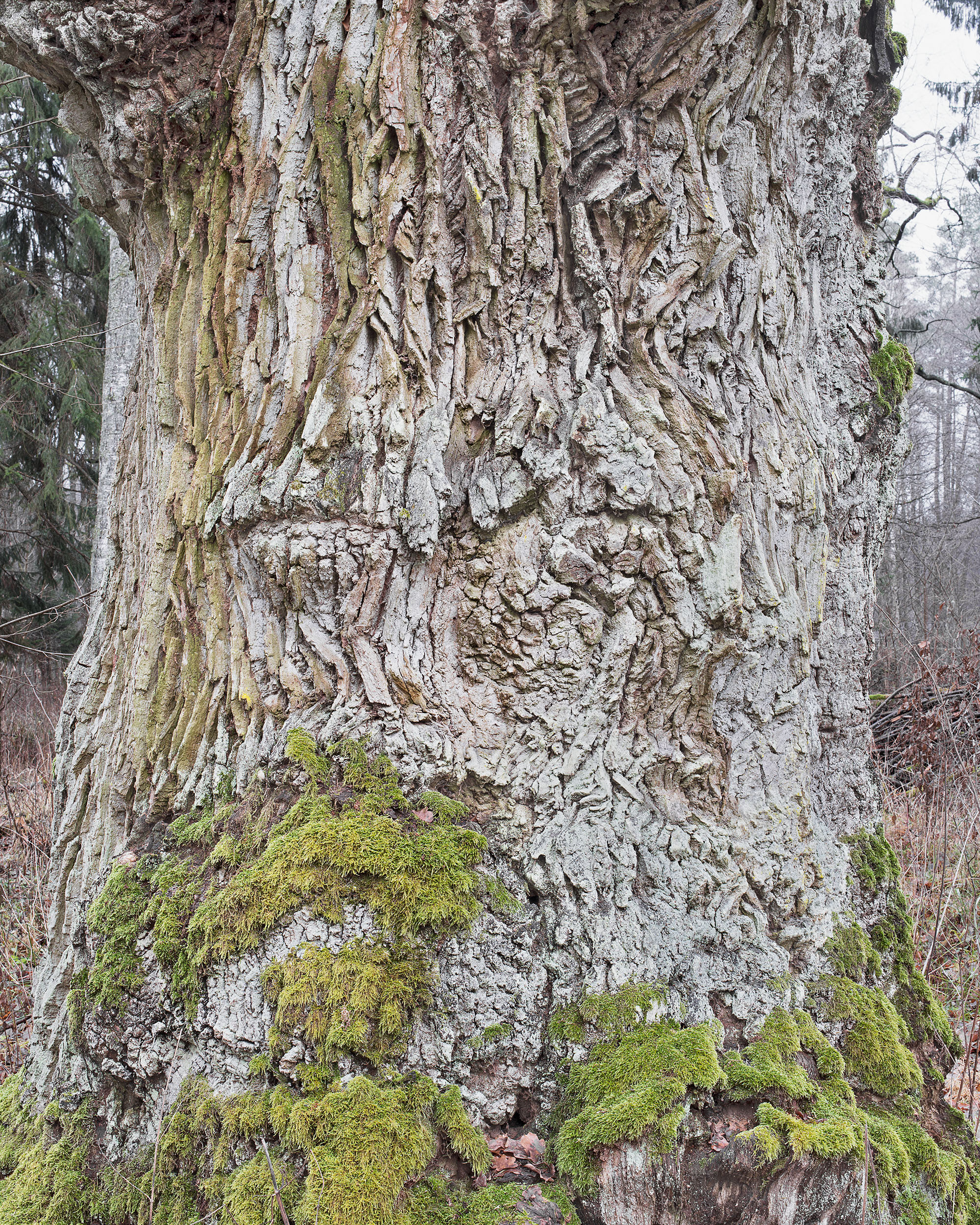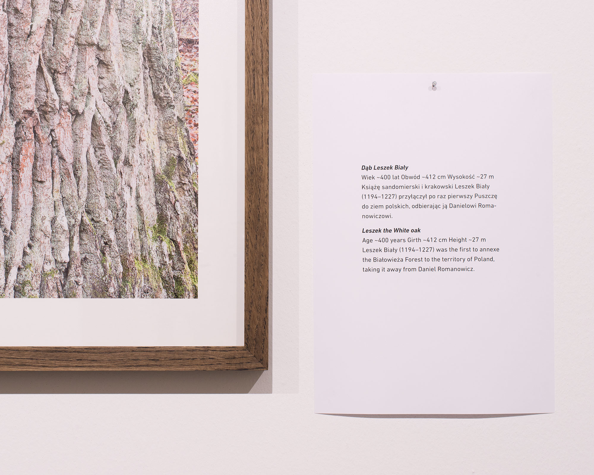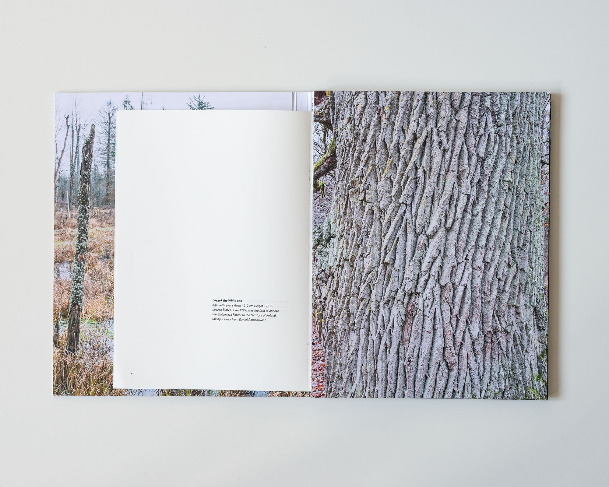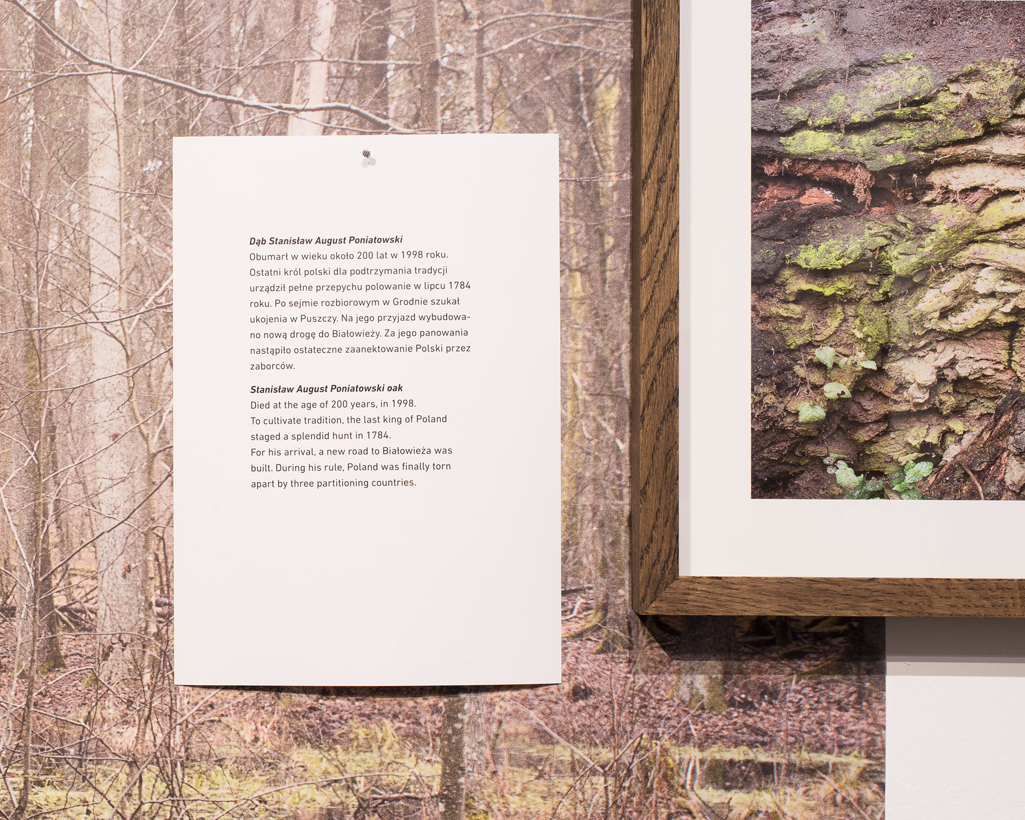 My photographs of forest landscapes oscillate between natural beauty and an uncanny atmosphere, recalling violent chaos and potential threats imposed by wilderness. In the project, they form the background for historical sources while aiming for reflections of our collective imagination of nature. During this fieldwork stage in 2017, I furthermore produced a “portrait series” of “royal oaks”. The forest received international attention back then, as the Polish government allowed logging in formerly protected areas. Białowieża is famous for its ancient oaks. Some reach ages of multiple centuries. However, their numbers are decreasing, and many of them are decaying. In a grove with particularly old specimens, selected trees have been named after Polish and Lithuanian kings who played crucial roles in the history of the forest. Against the backdrop of the nationalistic atmosphere of the time, the personification of trees appeared as a nostalgic illustration of the country’s powerful history that sadly coincided with the extensive destruction of its natural resources and heritage.