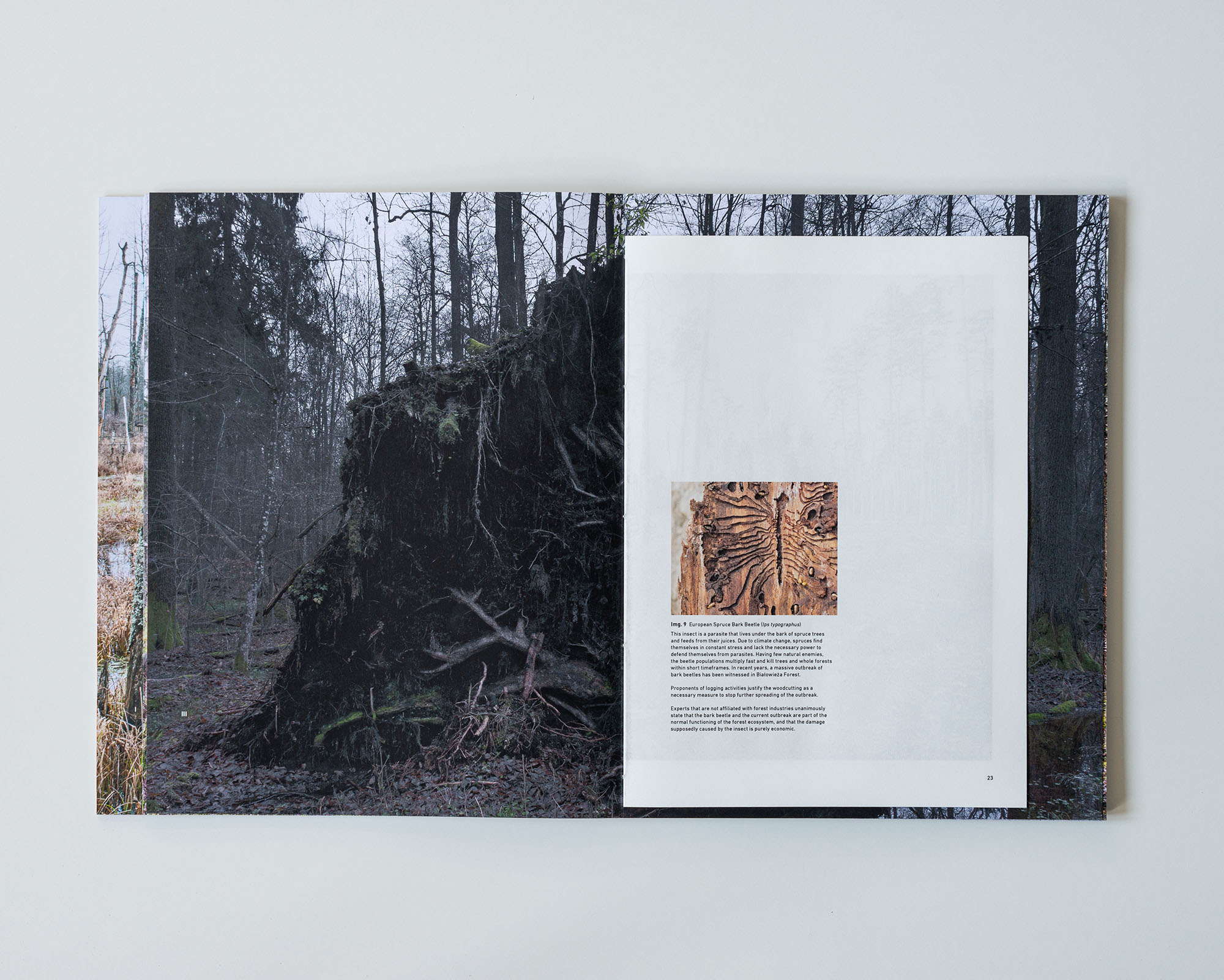 Białowieża Forest is a precious ecosystem that has only been saved from the fate of the average European landscape because it became a royal hunting reserve in the 16th century. Ever since it has been protected by strict laws to preserve its beauty for the elites. It was repeatedly referenced as an ideal of nature in Eastern European poetry and painting, became a national park of Poland in 1932 and was listed as UNESCO World Heritage in 1979. However, countless traces of human interference can be observed in the vast territory that illustrate ongoing attempts to tame the last bits of wilderness. Situated in the „Bloodlands“ (Timothy Snyder) of Europe, throughout its history, the forest and its inhabitants have witnessed changing occupations, exploitation in colonial style, and genocide during National Socialism.
