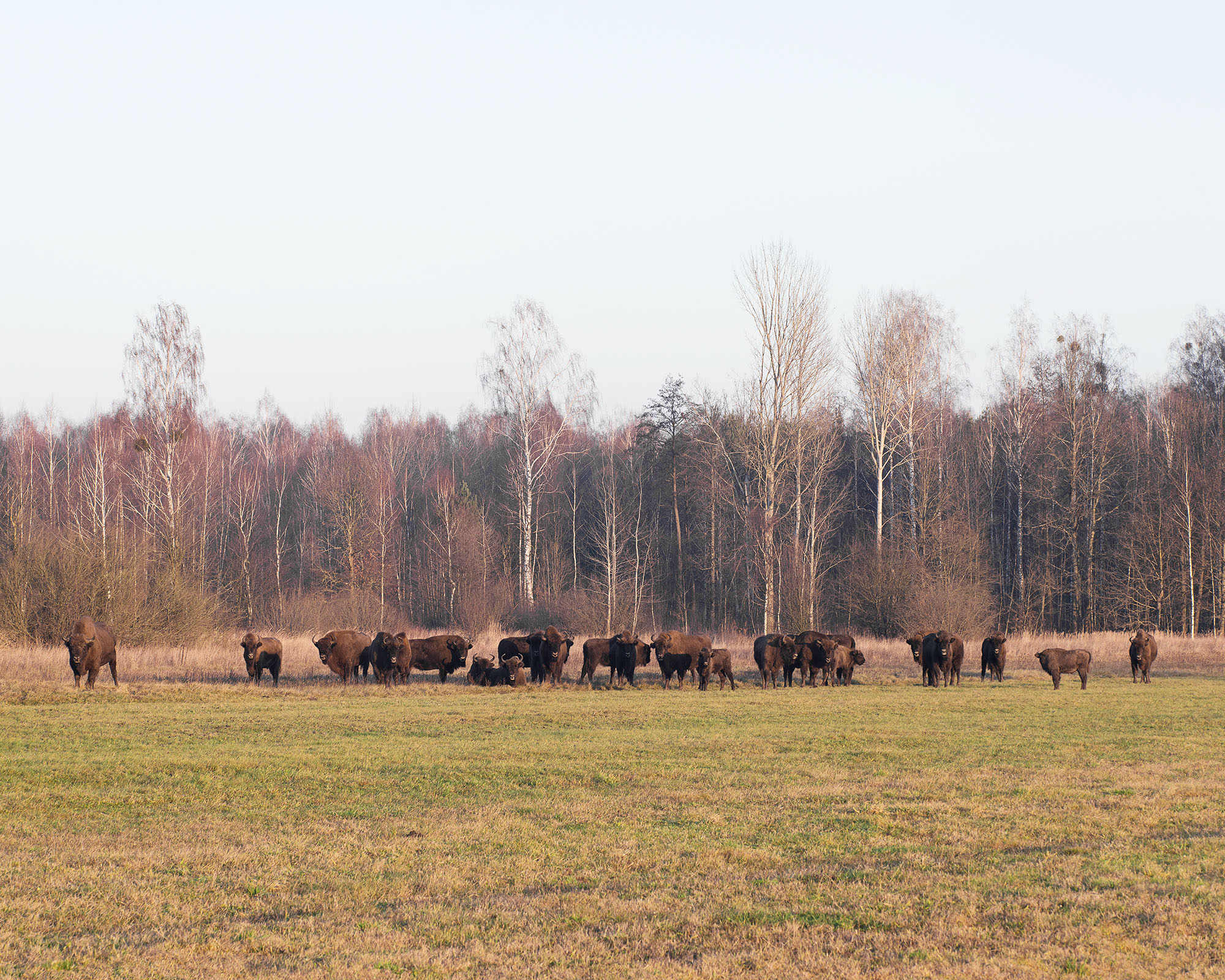 The bison population in Białowieża Forest strongly depended on winter feeding provided by humans, centuries before the complete extinction in the 1920s. Nowadays, local farmers are paid by EU funds to cut hay in traditional ways, in order to protect pastures from reforestation and provide haystacks for the animals.