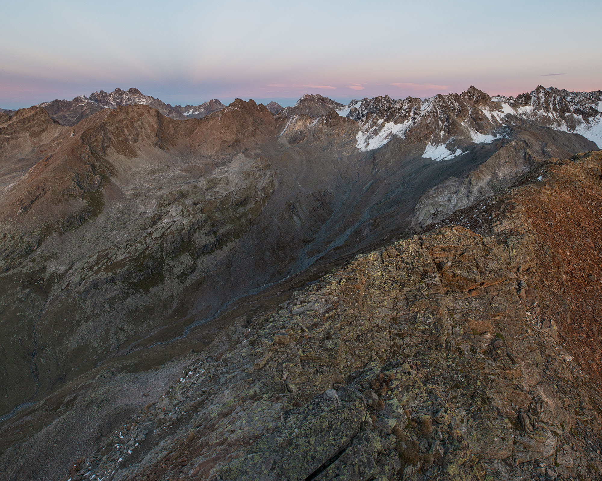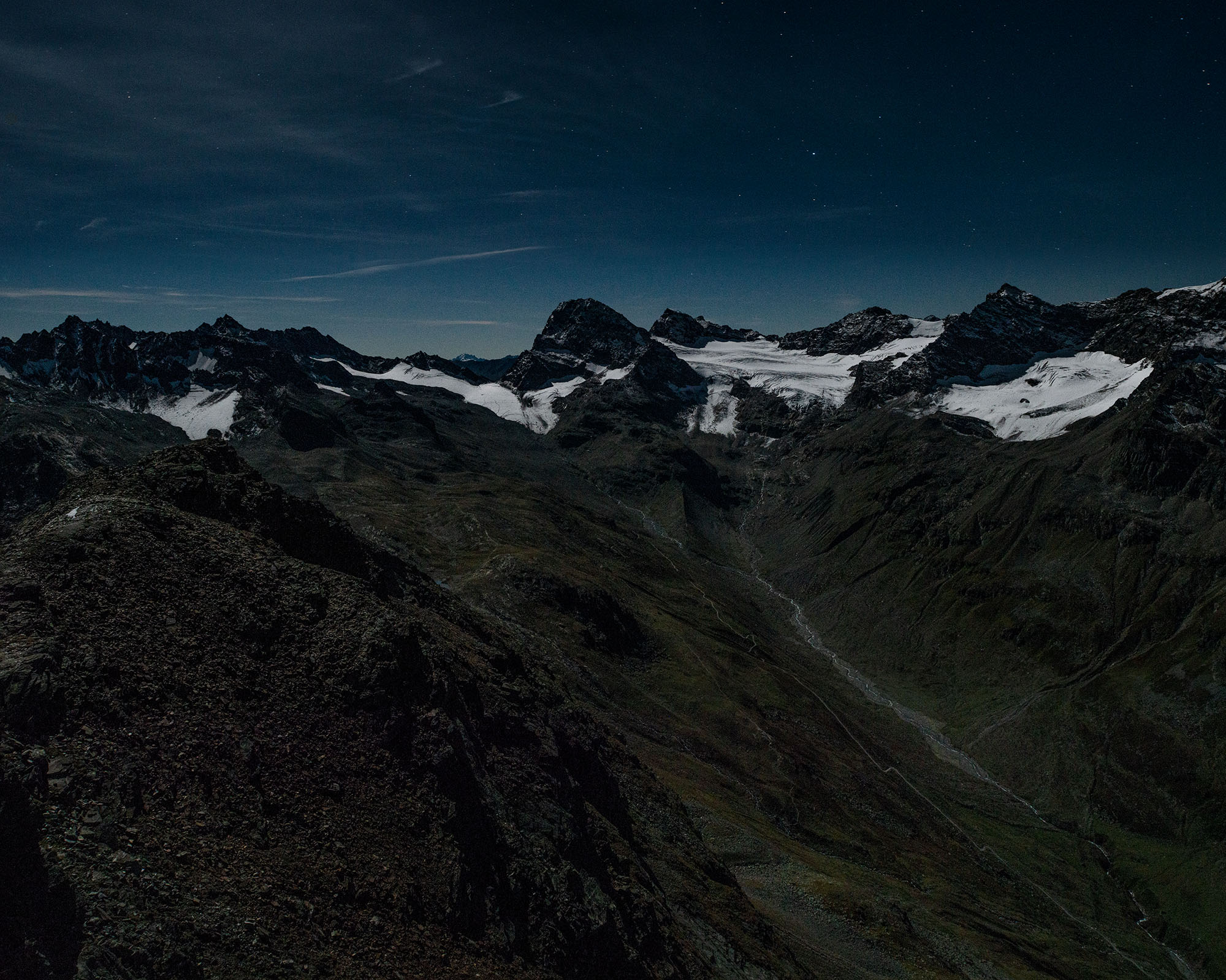 I understand his efforts as an ambiguous example of romantic love for nature and the advent of industrialised imaging technologies. Thus, in 2022, I reenacted his expedition to complement his captures with contemporary views of the glaciers produced with the extended possibilities of modern equipment. Eventually, I spent six days on and around the mountain, including a bivouac on the summit from September 12 to 13. In an ongoing process, I will contextualise the resulting productions with Immler's historical footage to create a selection of works for exhibition and publication.