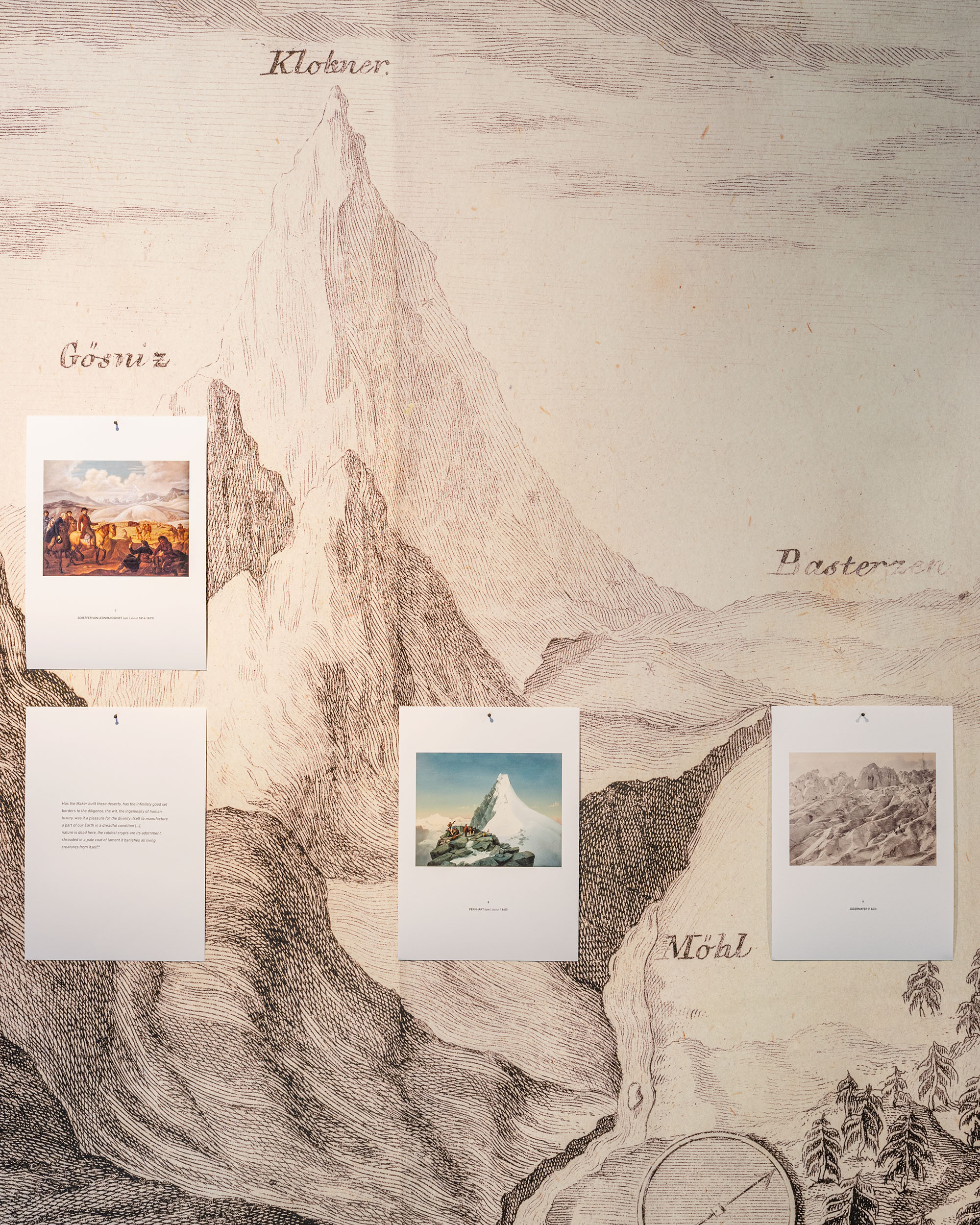 The exhibition at Kunsthaus Wien included a detailed list of references. Next to numerous other sources, I am indebted to the research of Marianne Klemun on the exploration of the high alpine that she so brilliantly summarised in her publication