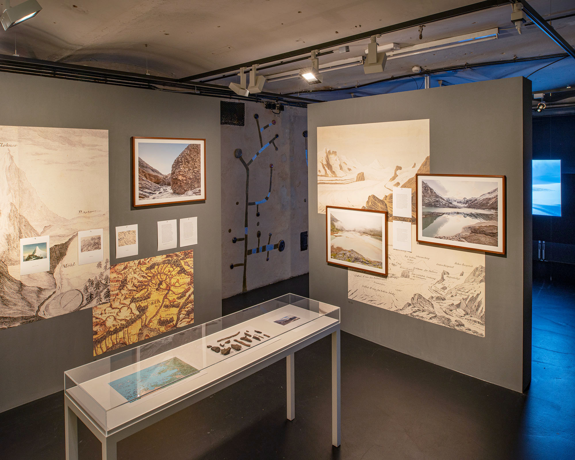 The project started as a collaboration with the Vienna Anthropocene Network of the University of Vienna. It contributed to the „Vanishing Ice“ workshop at the Naturhistorisches Museum and the University of Vienna in January 2020. The final presentation was a mixed-media installation at Kunst Haus Wien – Museum Hundertwasser in the same year.