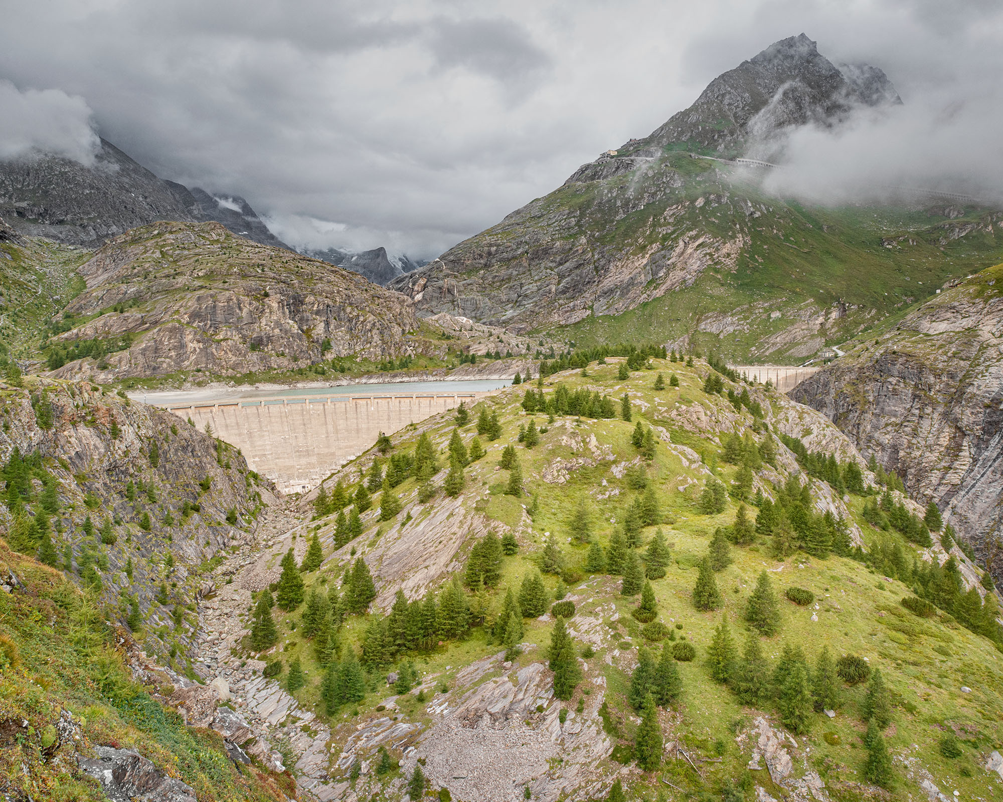 The glacier front of Pasterze covered the rock below the dam walls when the glacier reached its Little Ice Age Maximum around 1848. Meanwhile, it has retreated for approximately 2km.